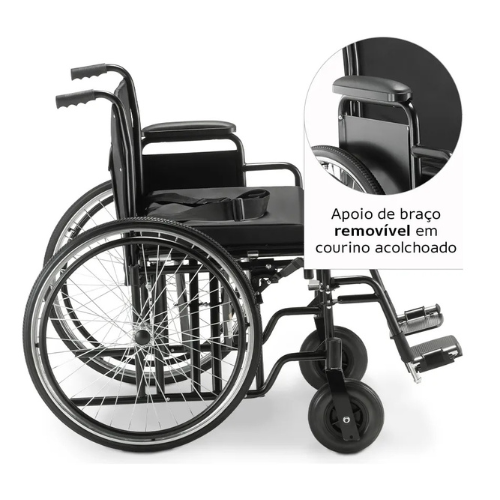 Cadeira de Rodas Dobrável Para Obeso 180 Kg assento 62 cm