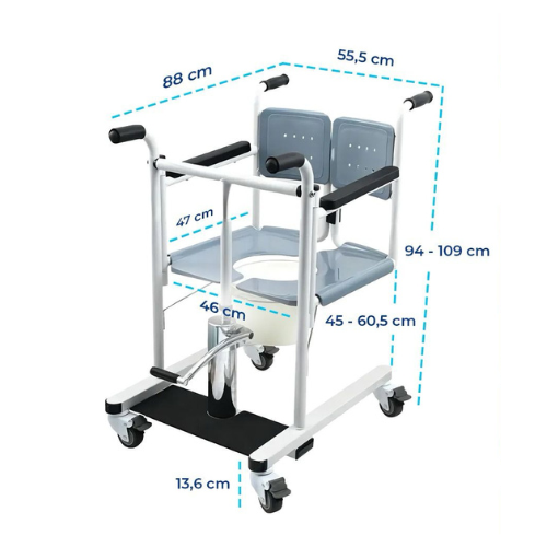 Se você procura uma solução prática, segura e eficiente para auxiliar na mobilidade e transferência de pessoas com dificuldades de locomoção, a Cadeira de Transferência Hidráulica MED 3030 é a escolha ideal! Robusta e funcional, foi projetada para oferecer conforto ao usuário e facilitar o trabalho de cuidadores, profissionais da saúde e familiares.