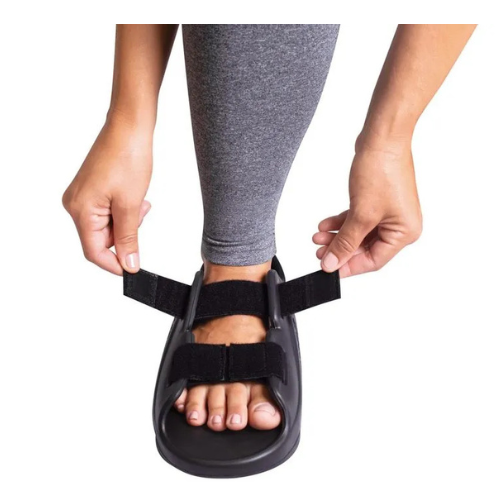 O recurso foi desenvolvido para proteger e aliviar a descarga de peso na região anterior do pé, auxiliando na recuperação pós-cirúrgica ou em lesões traumáticas. Confeccionada em EVA, material macio, leve e resistente, a sandália possui formato anatômico que acompanha o contorno do pé, proporcionando conforto, segurança e equilíbrio necessários durante a recuperação.