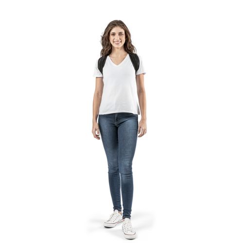 - Puxe as duas tiras para baixo e posicione os ombros para trás para corrigir a postura;